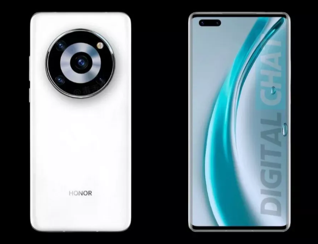 从爆料的信息来看,荣耀Magic3背部相机模组采用了圆环形设计,主摄位于中央位置,另外三颗镜头围绕在主摄周围,机身正面采用了全面屏双挖孔设计。